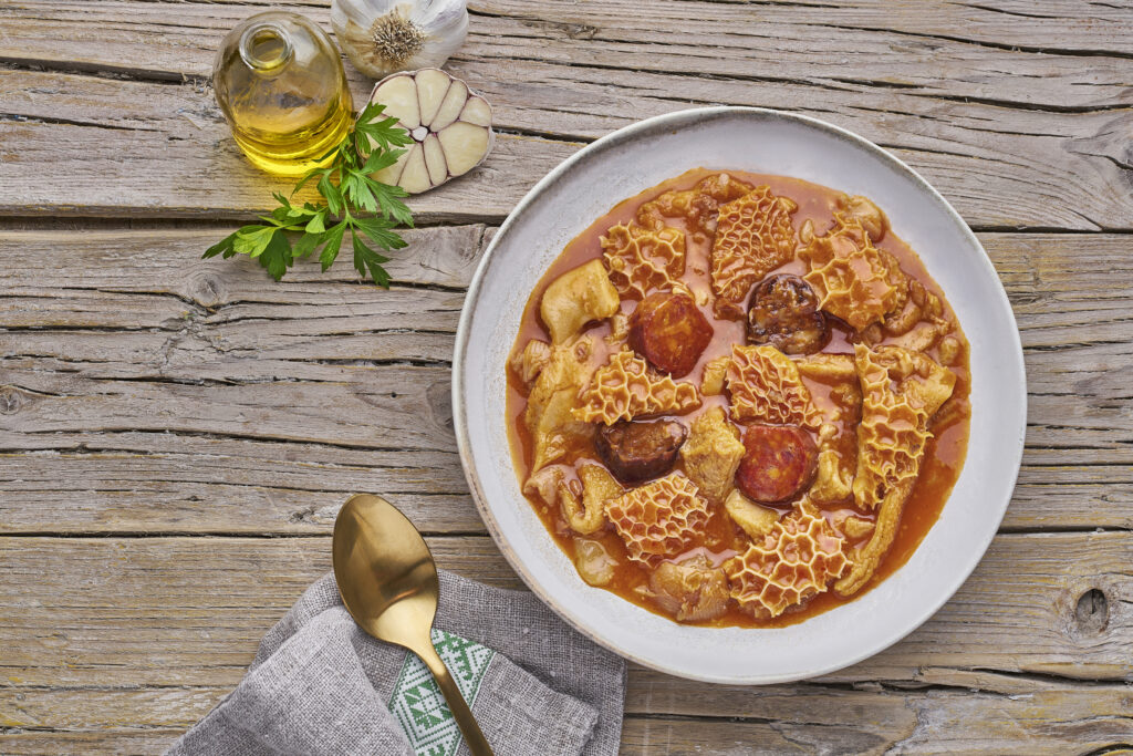 Los callos a la madrileña son, probablemente, los más conocidos dentro y fuera de nuestras fronteras. En su elaboración se utilizan callos de ternera, morro y pata, cocidos a fuego lento hasta alcanzar una textura melosa.